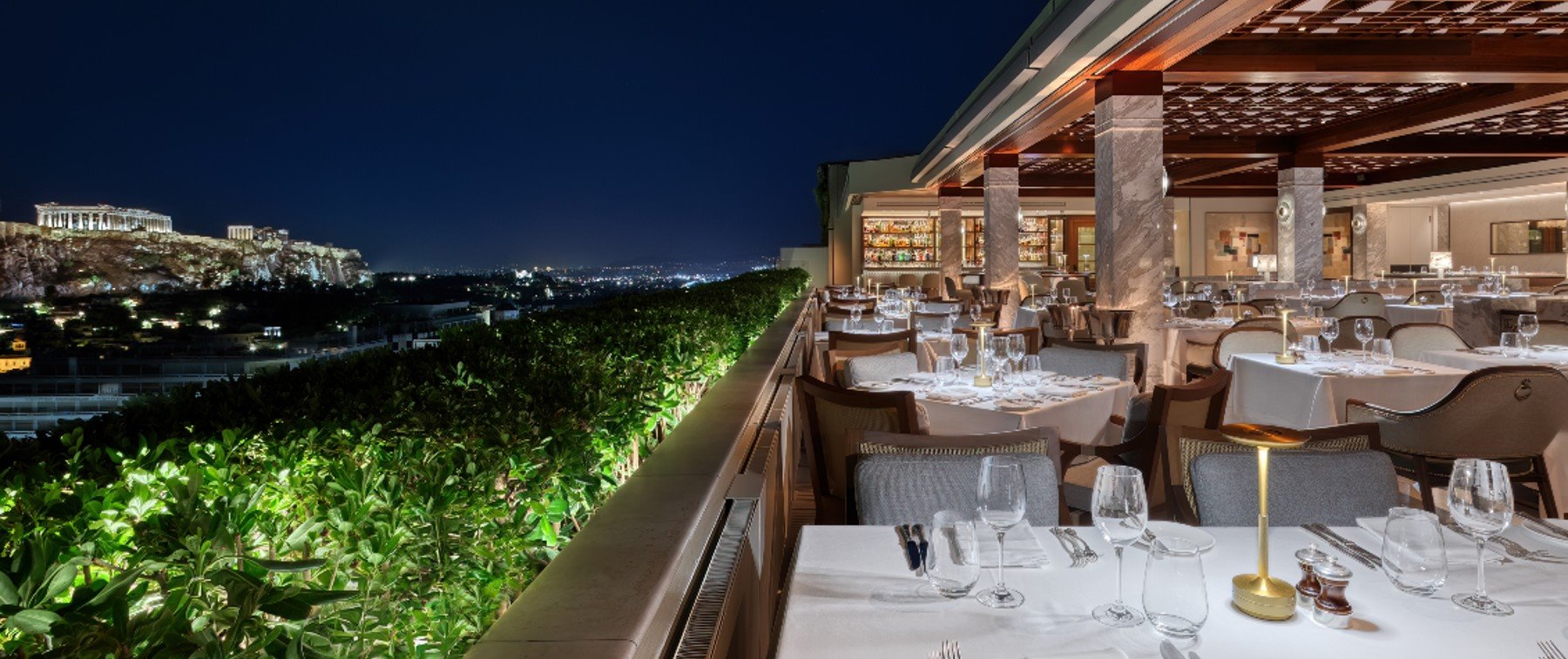 The GB Roof Garden Restaurant and Bar, is located on the 8th floor of the Hotel Grande Bretagne. The generous space that unfolds before our eyes captivates the senses and arouses the desires at first sight.